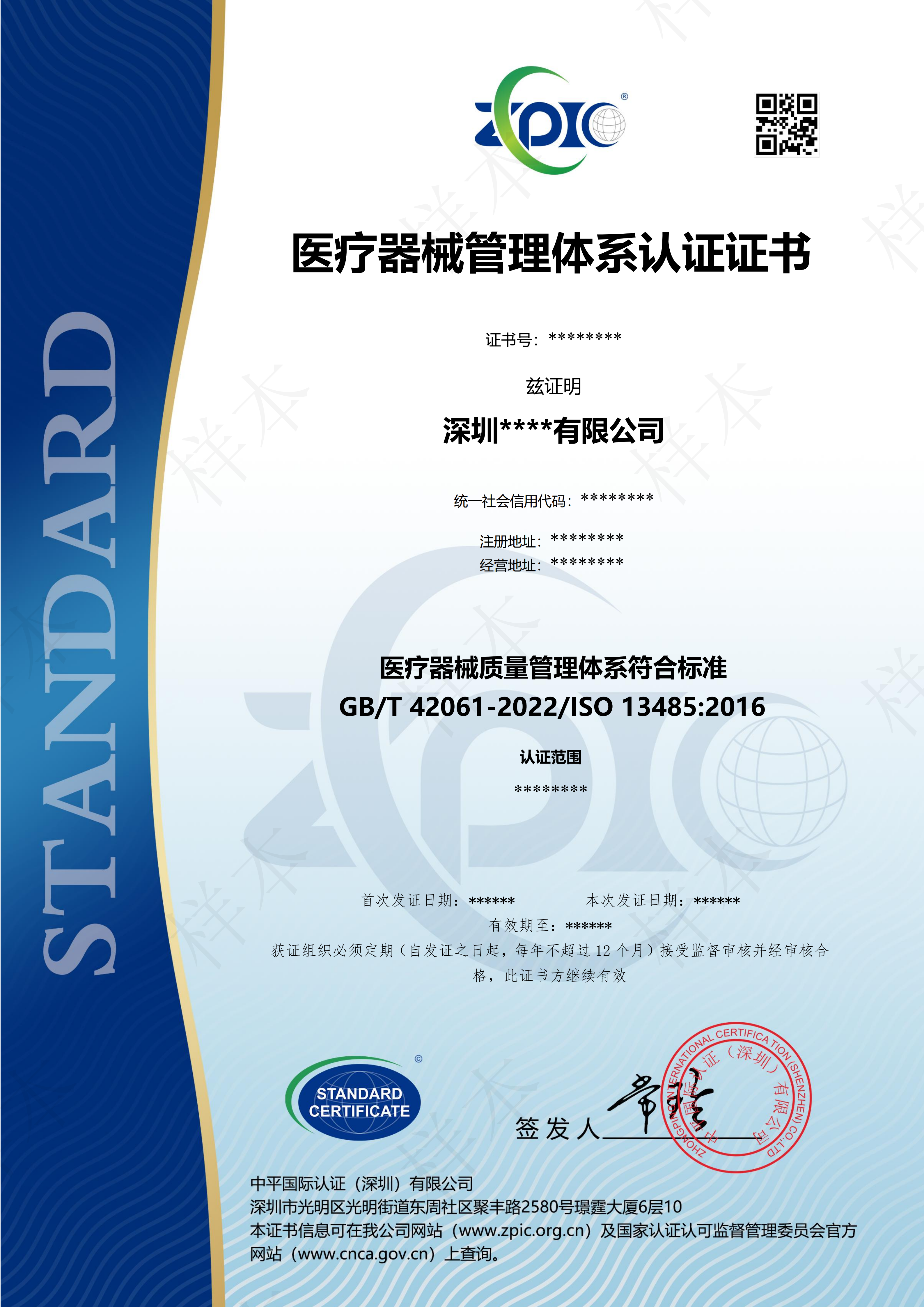 医疗器械体系认证证书-中文